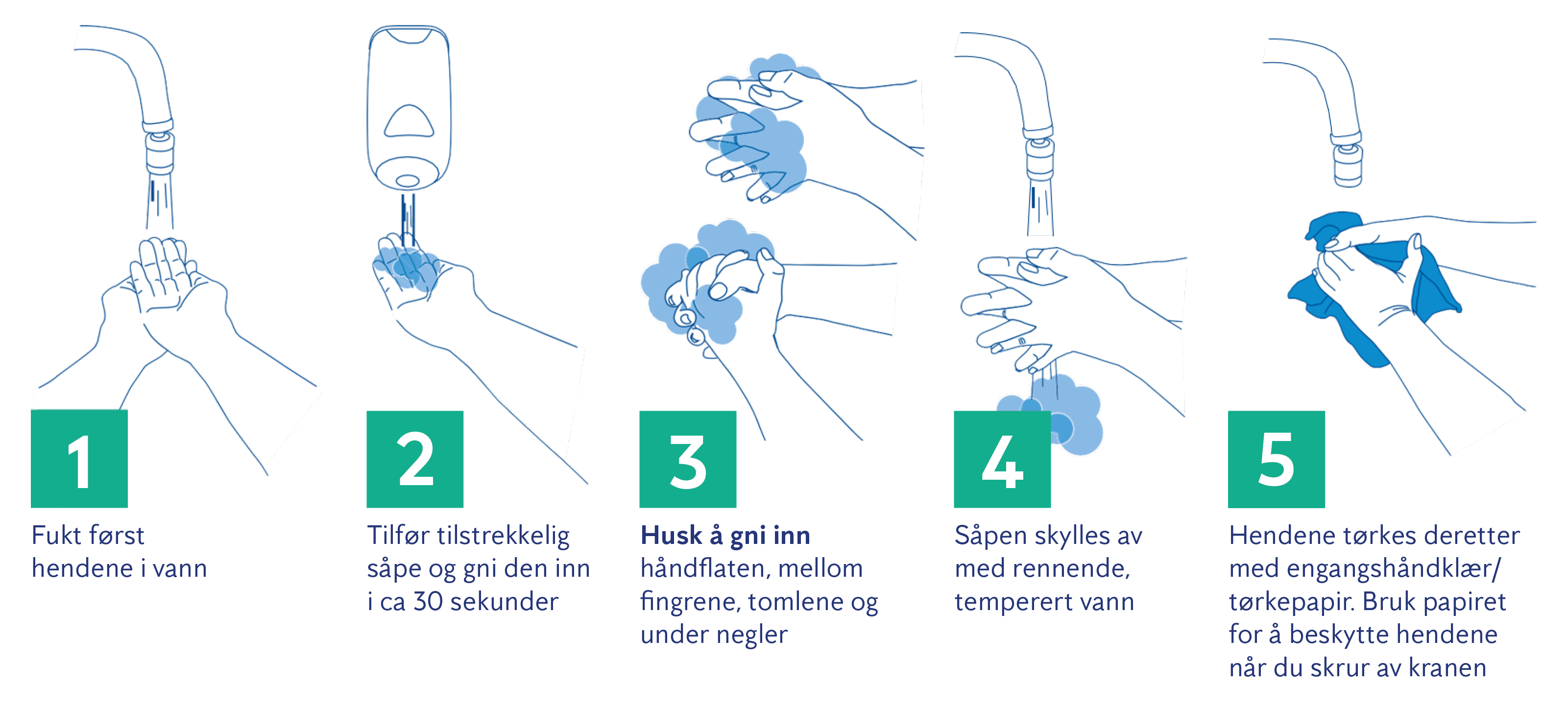 Det er de samme viktige tingene som gjelder nå med tanke på smittevern for Coronaviruset, som ellers for trygg mat. Håndvask er et av de viktigste og mest effektive tiltakene, da såpe løser opp viruset så det ikke klarer å infisere andre celler i kroppen.