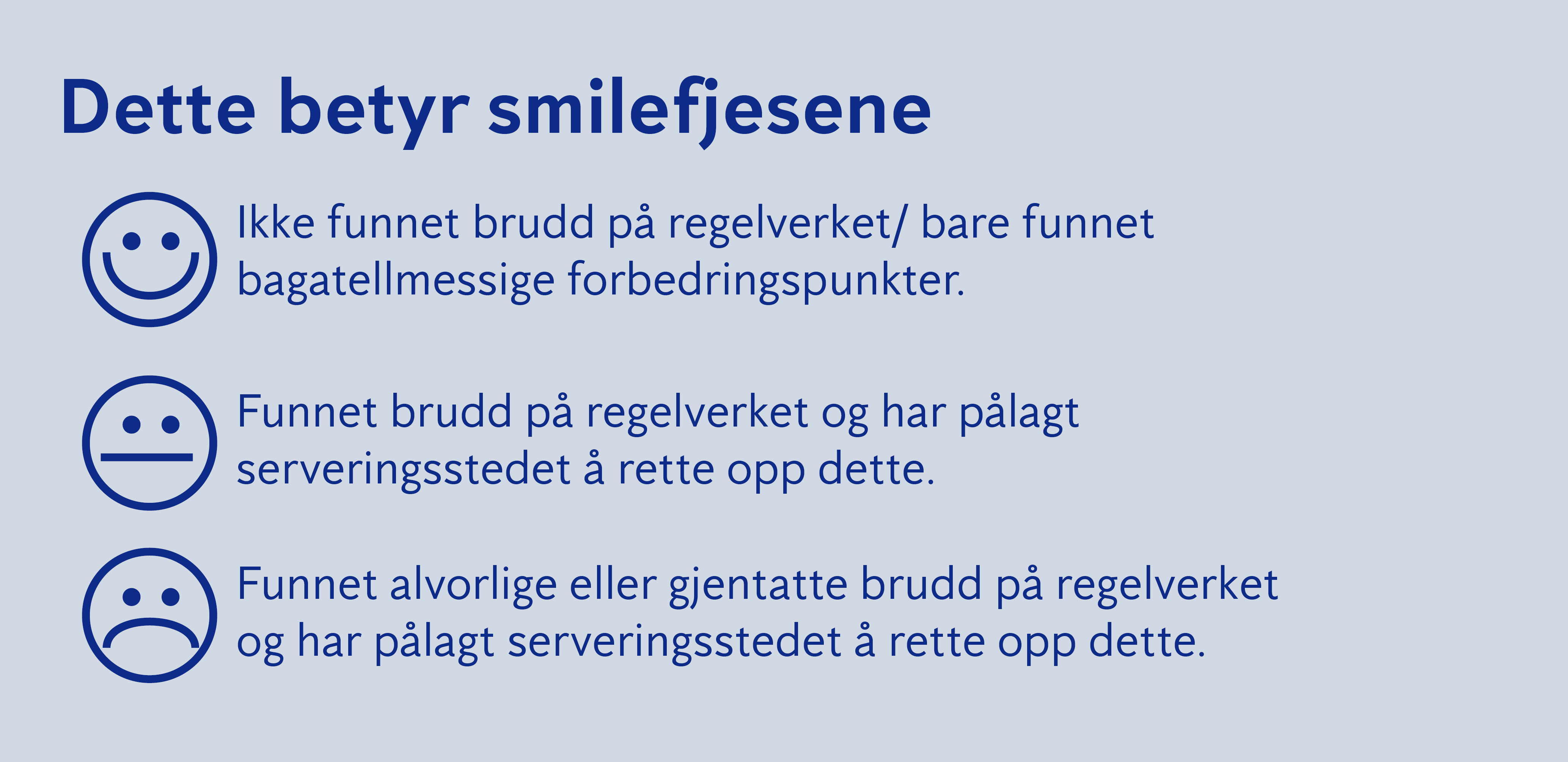 Mattilsynet vurderer forhold som hygiene, renhold, vedlikehold og rutiner knyttet til mattrygghet. Et godt resultat krever at alle punkter er i orden – både det som er synlig og det som ligger i dokumentasjonen.