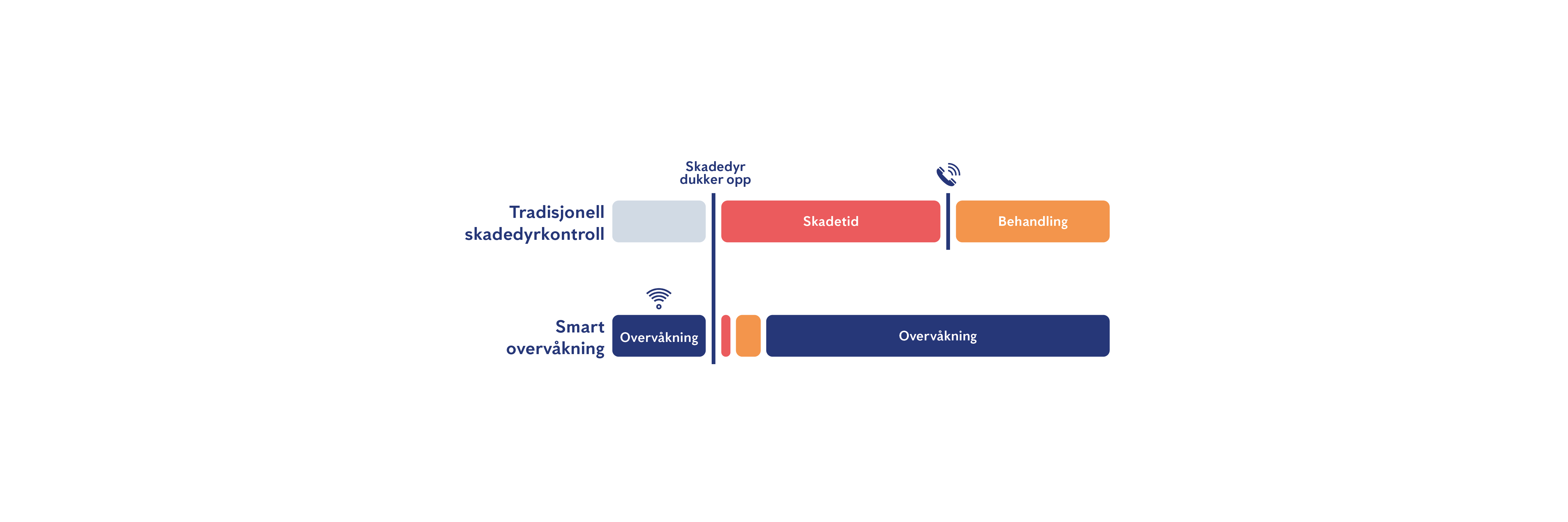 Med tradisjonell skadedyrkontroll tar det lang tid fra et skadedyr dukker opp til det blir kontrollert. Med Anticimex SMART forsvinner risikoen, ved å kunne oppdage et skadedyr før du ser det i virksomheten.
